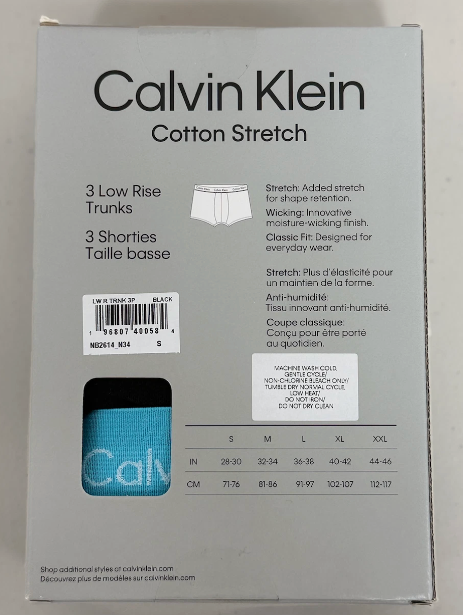 Calvin Klein Men's Cotton Stretch Trunks 3 Pack Underwear - Black/ Multi